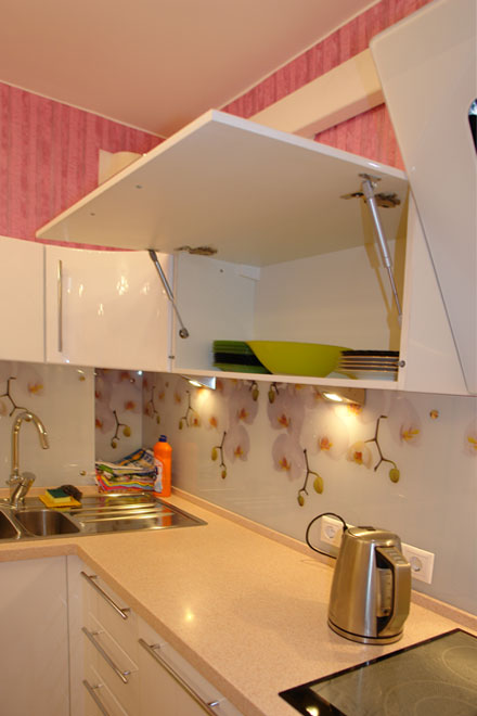 Столешницы из искусственного камня и фасады МДФ.